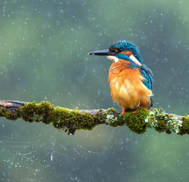 Kingfisher in raindrops
